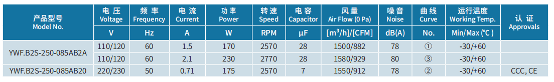 產(chǎn)品型號 YWF.B2S-250-085AB20